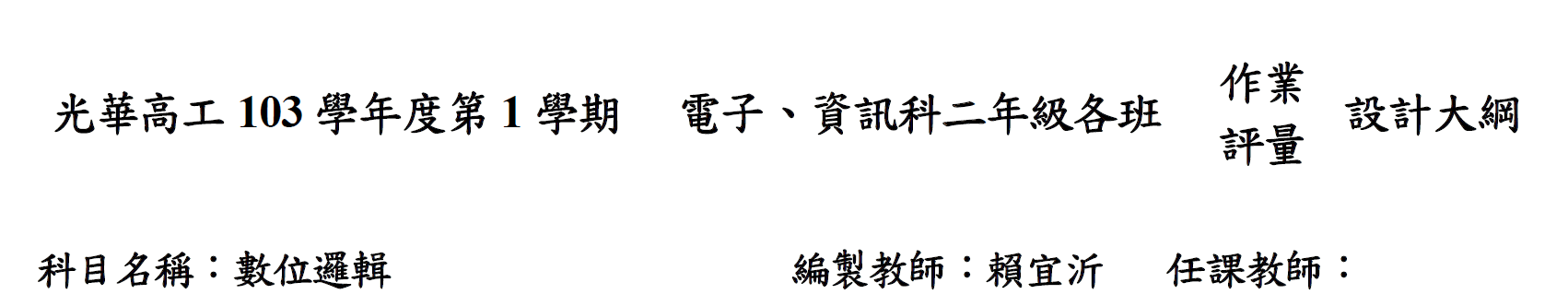 103-1電子資訊科高二數位邏輯-作業總表